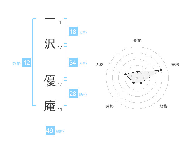 一沢 優庵さんを姓名の画数から五運を鑑定