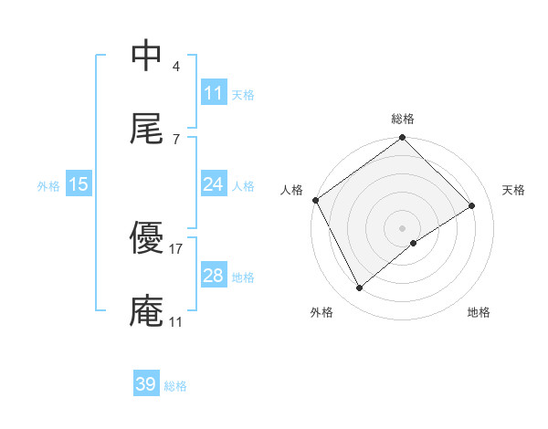中尾 優庵さんの総格は39画の5点!