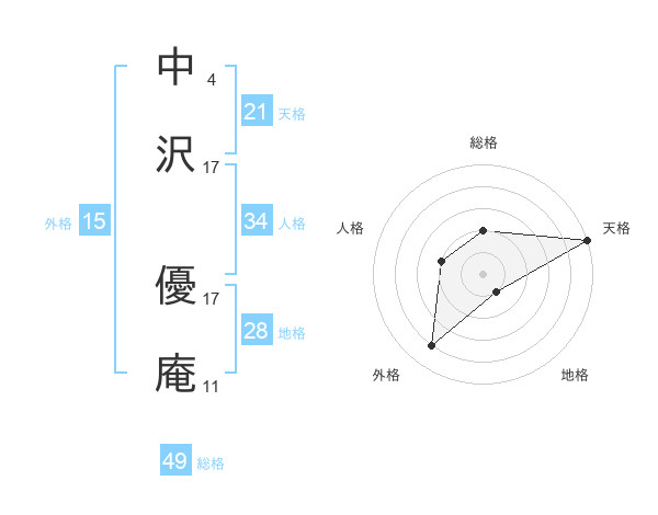 中沢 優庵さんを姓名の画数から五運を鑑定