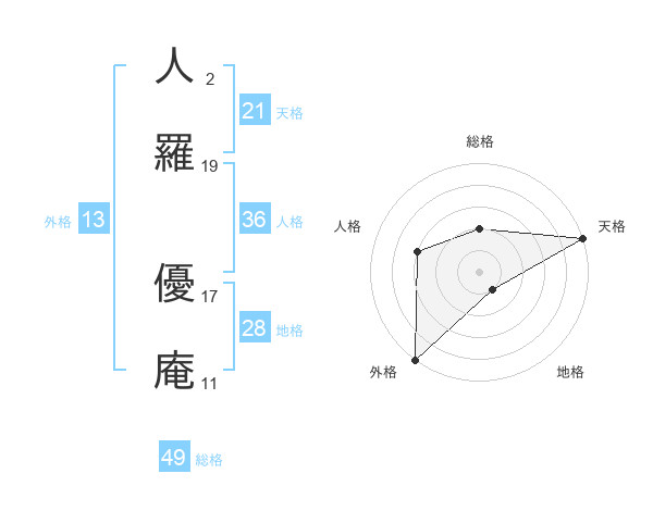 人羅 優庵さんの総格は49画の2点!