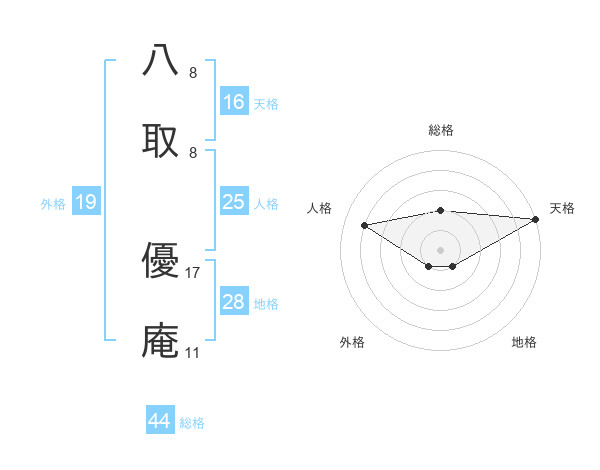 八取 優庵さんの総格は44画の2点!