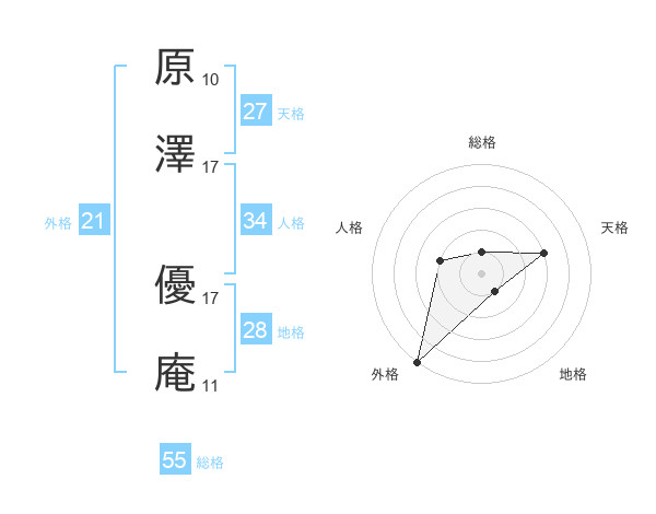 原澤 優庵さんを姓名の画数から五運を鑑定