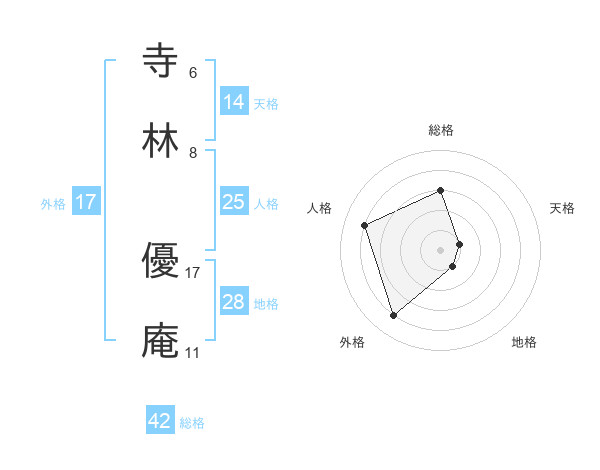 寺林 優庵さんの総格は42画の3点!