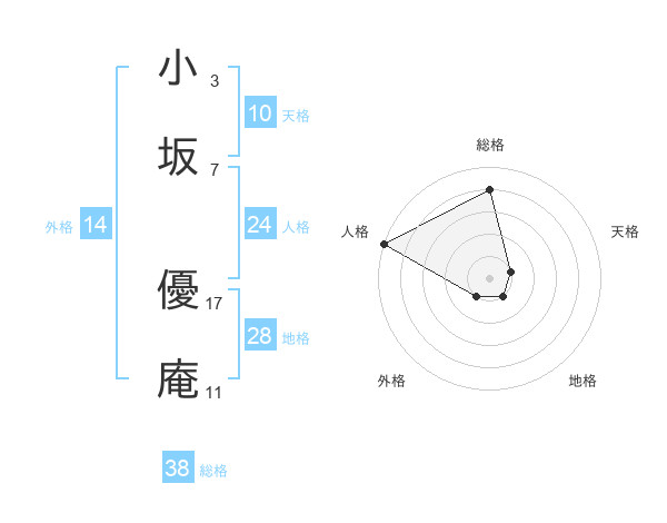 小坂 優庵さんを姓名の画数から五運を鑑定