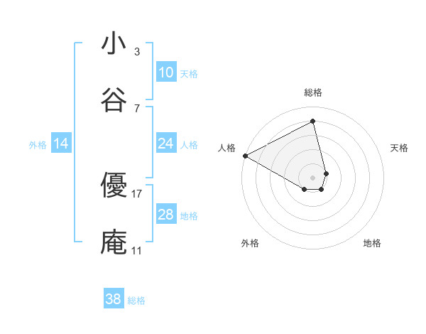 小谷 優庵さんの総格は38画の4点!