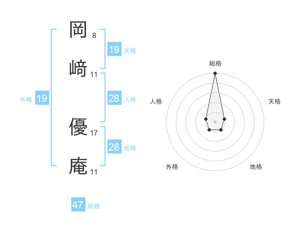 岡﨑 優庵さんの総格は47画の5点!
