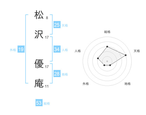 松沢 優庵さんの総格は53画の3点!