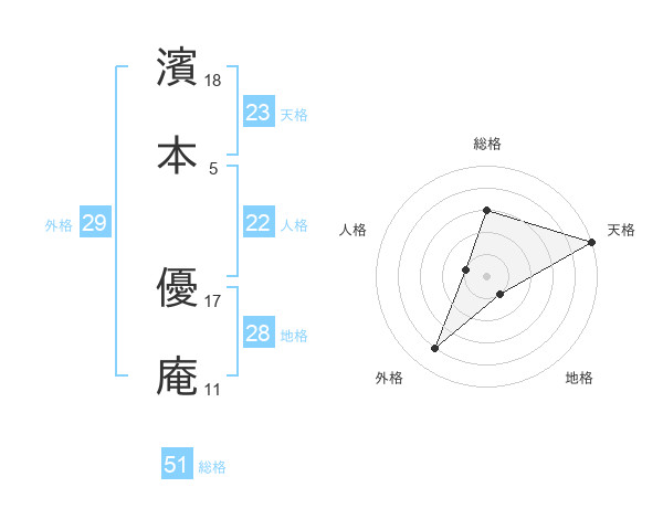 濱本 優庵さんの総格は51画の3点!