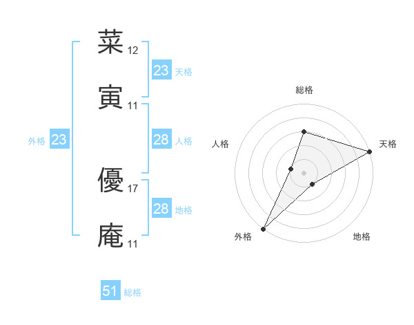 菜寅 優庵さんを姓名の画数から五運を鑑定