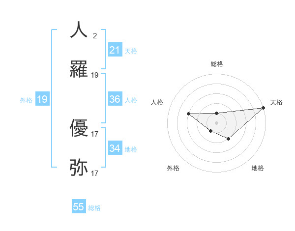 人羅 優弥さんの天格は21画の5点!
