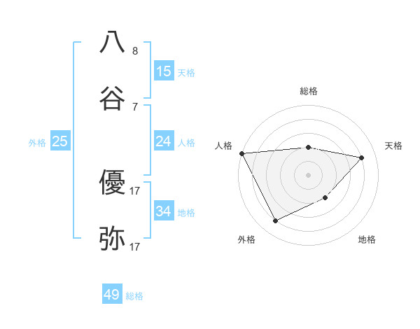八谷 優弥さんの天格は15画の4点!