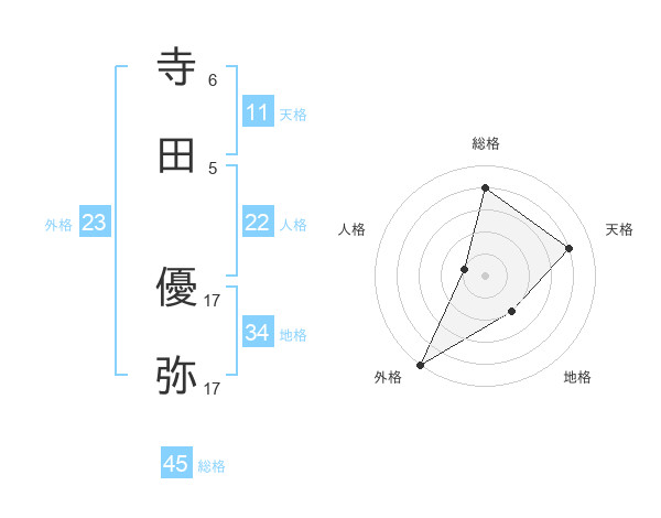 寺田 優弥さんを姓名の画数から五運を鑑定