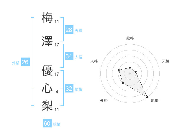 梅澤 優心梨さんを姓名の画数から五運を鑑定