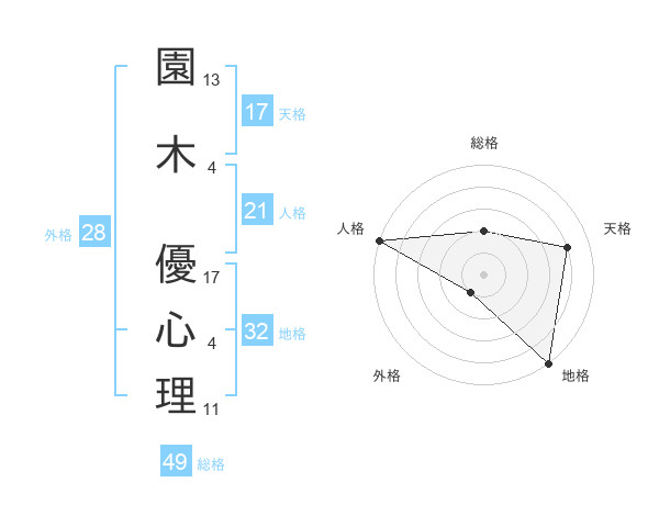 園木 優心理さんの天格は17画の4点!
