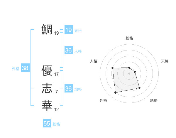 鯛 優志華さんを姓名の画数から五運を鑑定