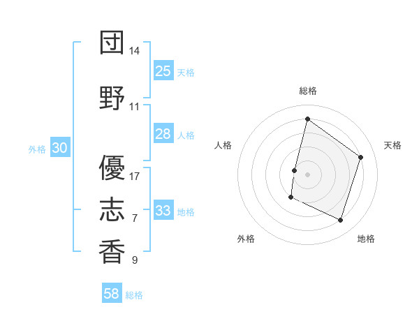 団野 優志香さんの総格は58画の4点!