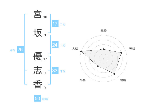 宮坂 優志香さんの天格は17画の4点!