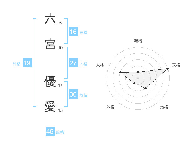 六宮 優愛さんを姓名の画数から五運を鑑定