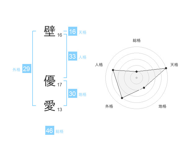 壁 優愛さんの地格は30画の2点!