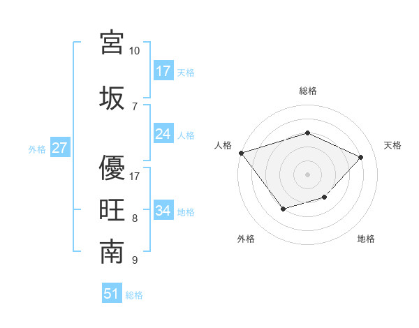 宮坂 優旺南さんの総格は51画の3点!