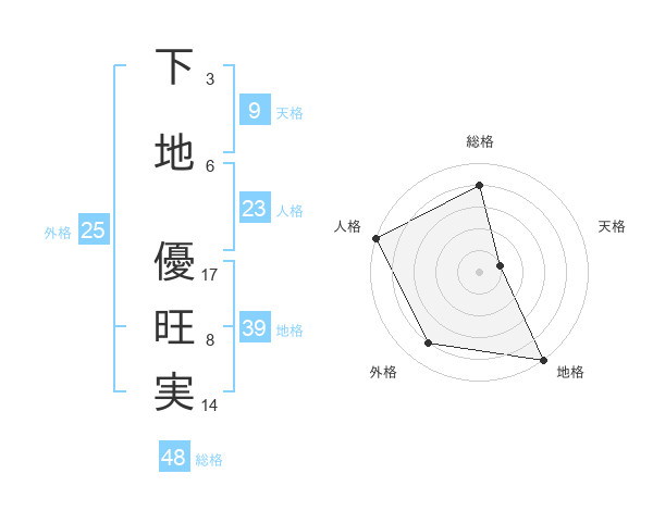 下地 優旺実さんを姓名の画数から五運を鑑定