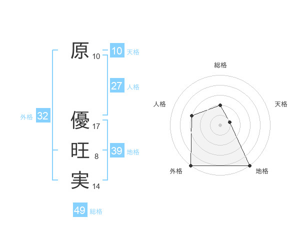 原 優旺実さんの外格は32画の5点!