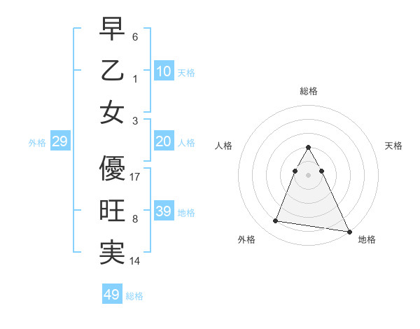 早乙女 優旺実さんを姓名の画数から五運を鑑定