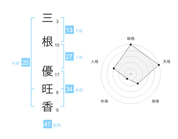 三根 優旺香さんを姓名の画数から五運を鑑定