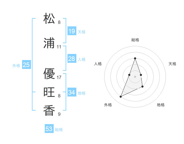 松浦 優旺香さんの総格は53画の3点!