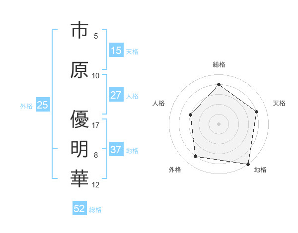 市原 優明華さんの総格は52画の4点!
