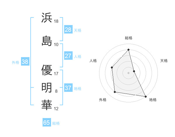 浜島 優明華さんの総格は65画の4点