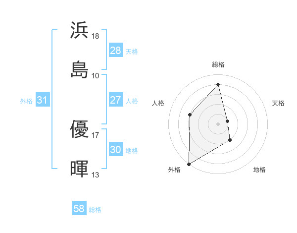 浜島 優暉さんを姓名の画数から五運を鑑定