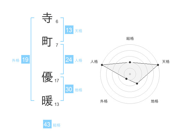 寺町 優暖さんの総格は43画の2点!