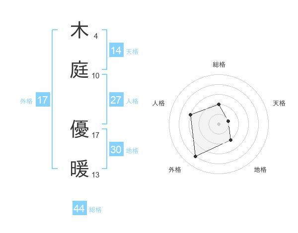 木庭 優暖さんの外格は17画の4点!