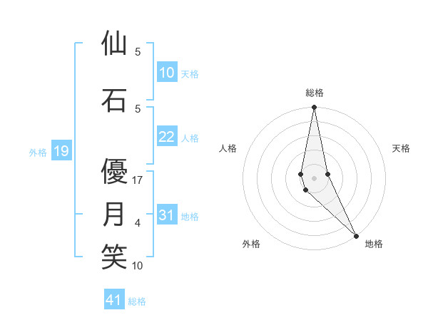 仙石 優月笑さんを姓名の画数から五運を鑑定