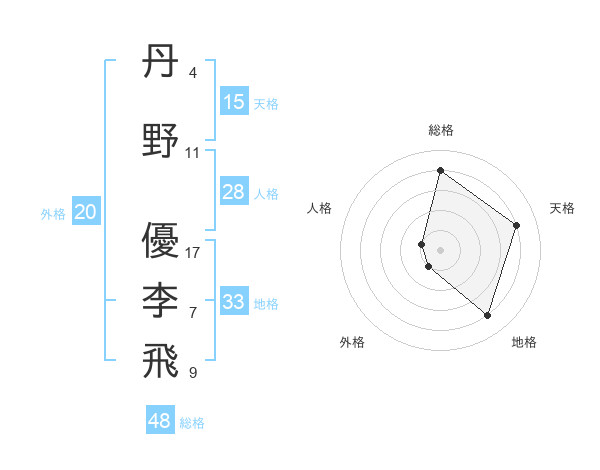 丹野 優李飛さんを姓名の画数から五運を鑑定