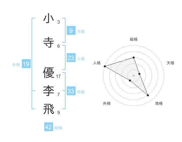 小寺 優李飛さんを姓名の画数から五運を鑑定
