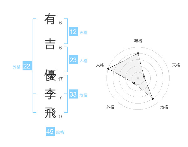 有吉 優李飛さんの総格は45画の4点!