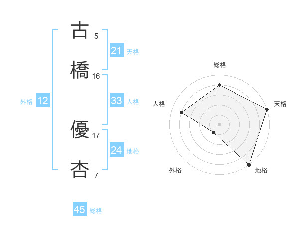 古橋 優杏さんを姓名の画数から五運を鑑定