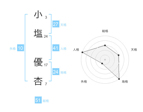 小塩 優杏さんの総格は51画の3点!