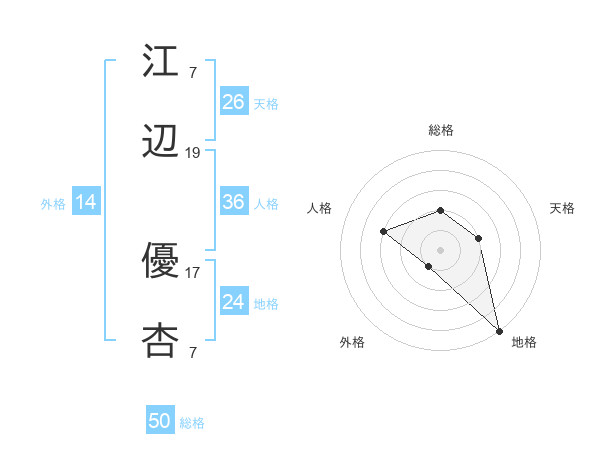 江辺 優杏さんの総格は50画の2点!