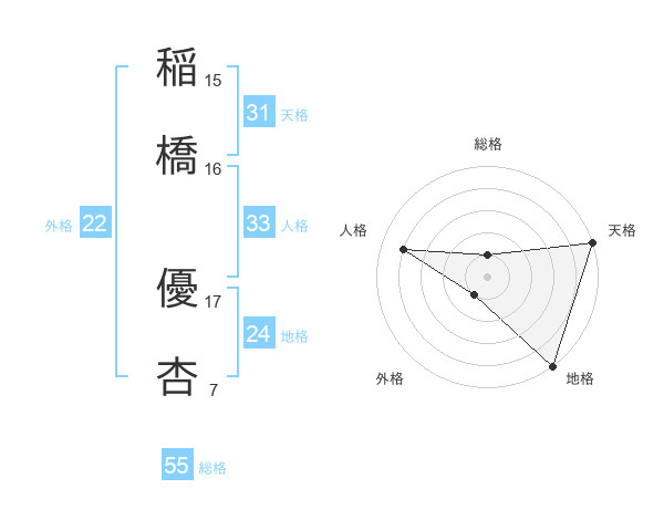 稲橋 優杏さんの天格は31画の5点!