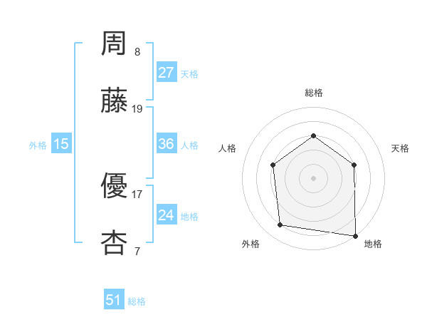 周藤 優杏さんの総格は51画の3点!