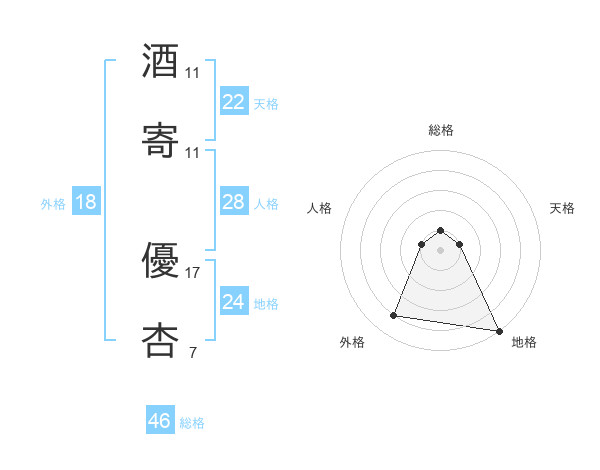 酒寄 優杏さんの総格は46画の1点
