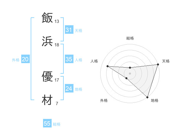 飯浜 優材さんの総格は55画の1点!