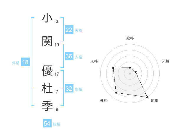 小関 優杜季さんを姓名の画数から五運を鑑定