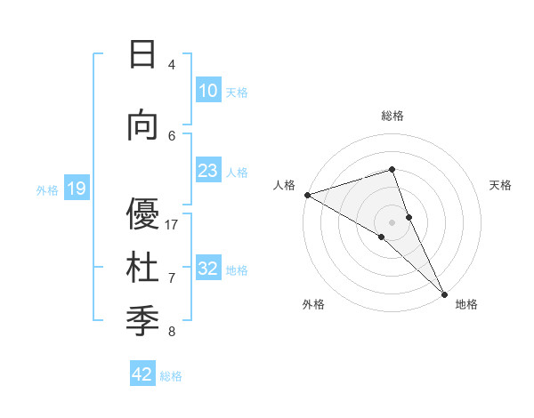 日向 優杜季さんの総格は42画の3点!