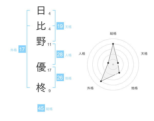 日比野 優柊さんの外格は17画の4点!