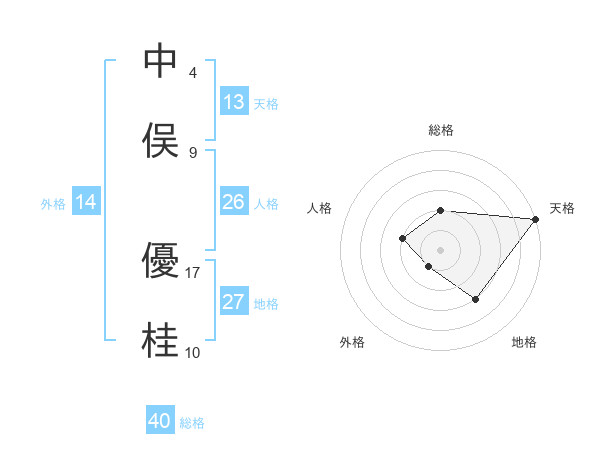中俣 優桂さんを姓名の画数から五運を鑑定