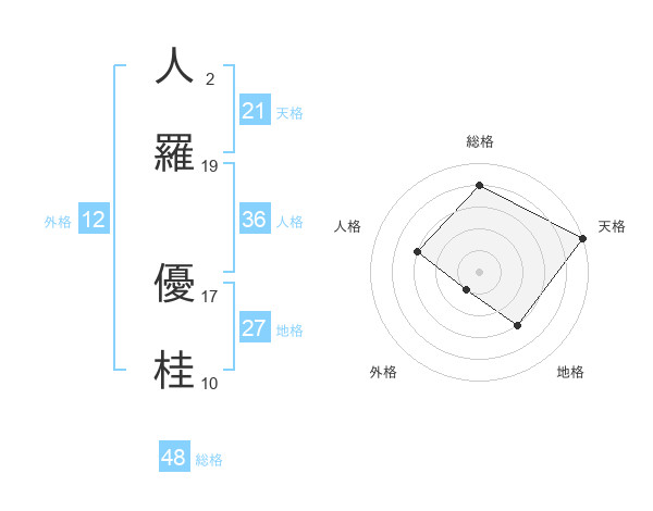 人羅 優桂さんの総格は48画の4点!